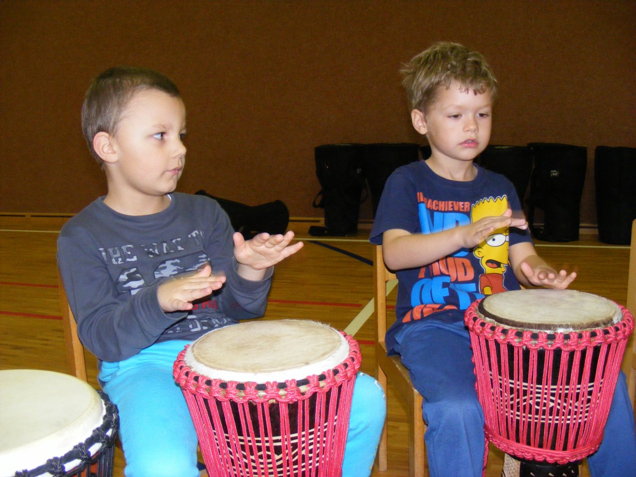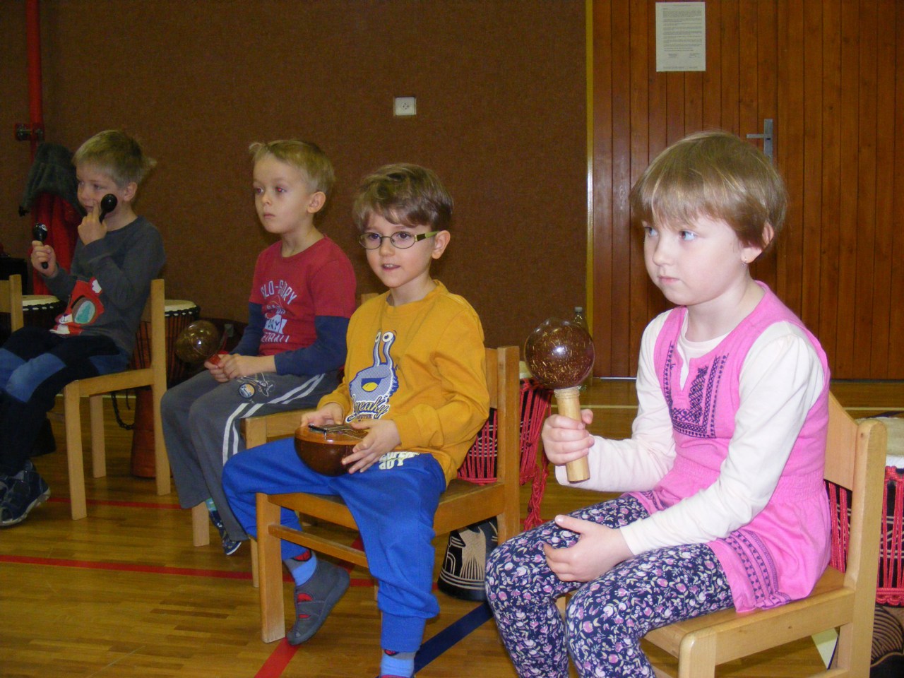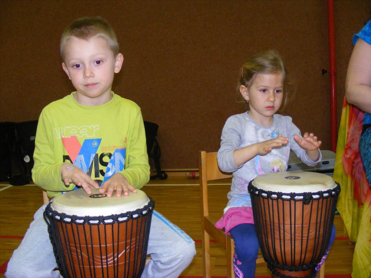 Hudební činnosti děti vždy baví, tak jsme do naší školky pozvali opět paní, která se zabývá muzikoterapií. Děti si vyzkoušely rytmické bubnování na velkých bubnech typu djembe, což je moc bavilo. Líbilo se jim hrát i na různé drnkací nástroje, které si samy vybraly. Na závěr se uvolnily při relaxaci na molitanech za poslechu zvuků různých etnických nástrojů – zvonců, perkusů atd. Někdo i usnul. Dopoledne naplněné hudbou se dětem moc líbilo, tak už se nyní těšíme s paní Lenkou na další naše setkání.