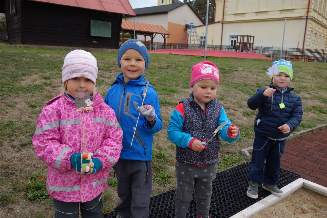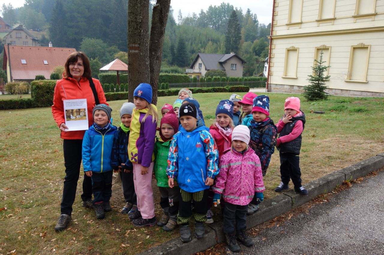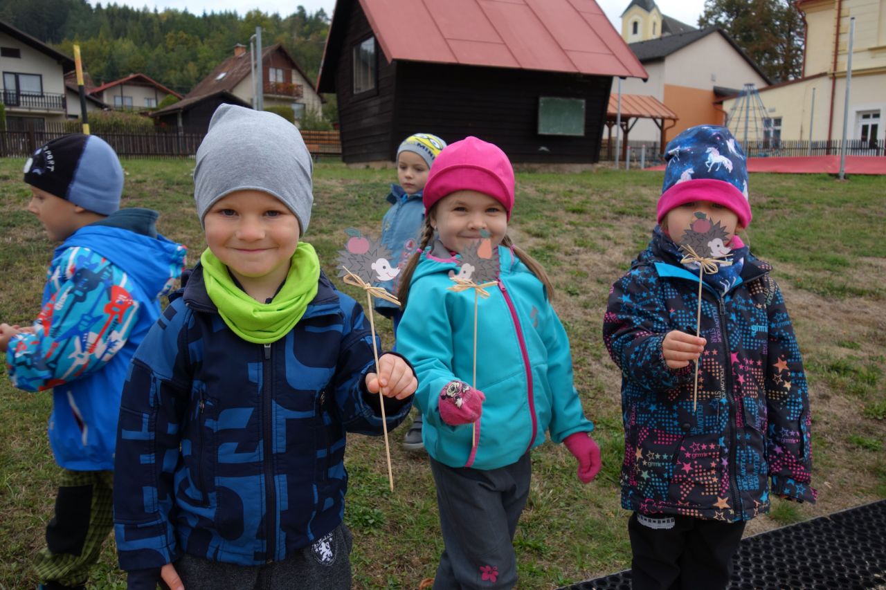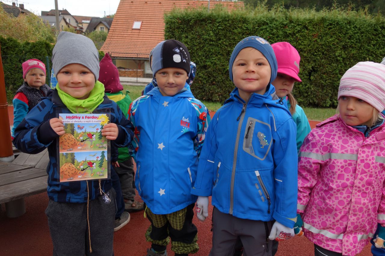 I v tomto školním roce jsme opět zahájili spolupráci naší školky s obecní knihovnou. Paní knihovnice, Markéta Tučková, pro nás během roku připravuje různá společná setkání s poučným programem. Jsme za to rádi a moc děkujeme. Děti se vždy těší, co pro ně paní knihovnice zase vymyslí a čím je překvapí. Seznamují se tak nejen s prostředím knihovny, ale setkání jsou různě tematicky zaměřěna, vždy po společné dohodě s učitelkami. Tentokrát jsme venku při sluníčku poznávali obrázky zvířátek a zaroveň jsme se o nich dozvěděli hodně zajímavostí. Na konci procházky jsme si našli i odměnu za šikovnost, zápich s ježečkem a malou sladkost. Děkujeme a těšíme se už nyní na adventní setkání, které proběhne v knihovně.