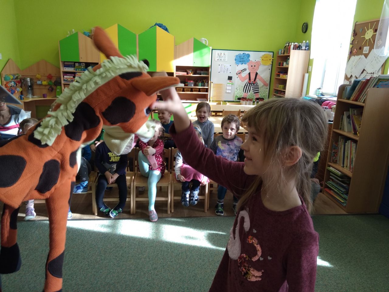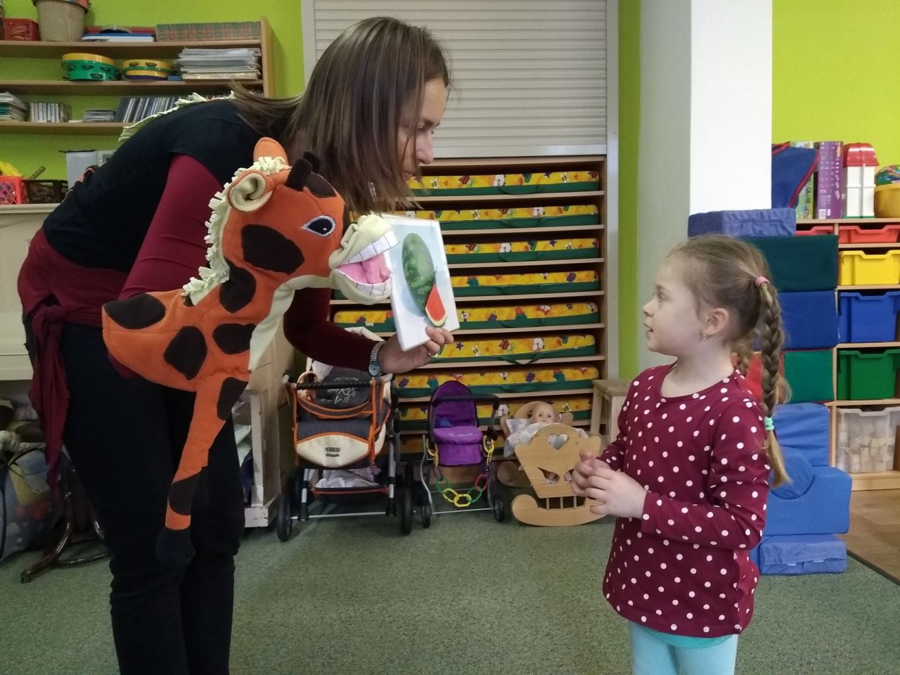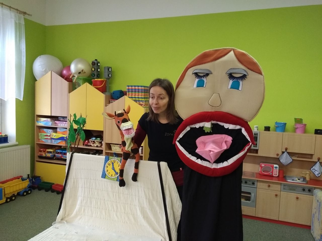 Jedním z předpokladů pro správný vývoj řeči je dobře rozvinutá motorika mluvidel - dostatečná svalová síla, rozsah pohybů jazyka a rtů, schopnost napodobit polohu mluvidel. Motoriku mluvidel proto v naší školce rozvíjíme u dětí hravou formou v průběhu každého dne. Velmi jsme uvítali nabídku logopedické pohádky a byli jsme moc rádi, že k nám do školky mohla přijet. Děti si v ní prostřednictvím navázání kontaktu se žirafou Žofkou motoriku mluvidel procvičovaly. Pohádka je moc zaujala a všichni dobře reagovali, se Žofkou s chutí spolupracovali. Paní logopedka má ve své nabídce i jiné pohádky, tak věříme, že jsme se se Žofkou neviděli naposledy.