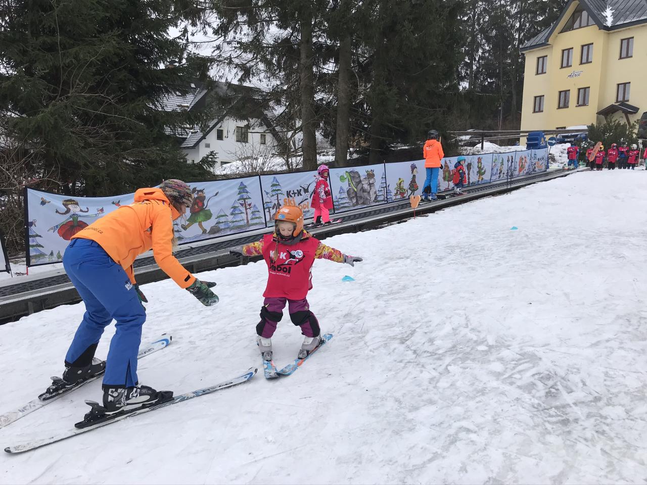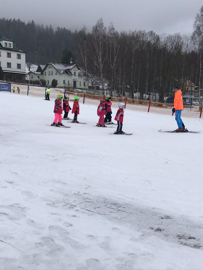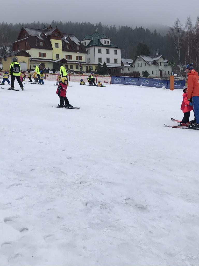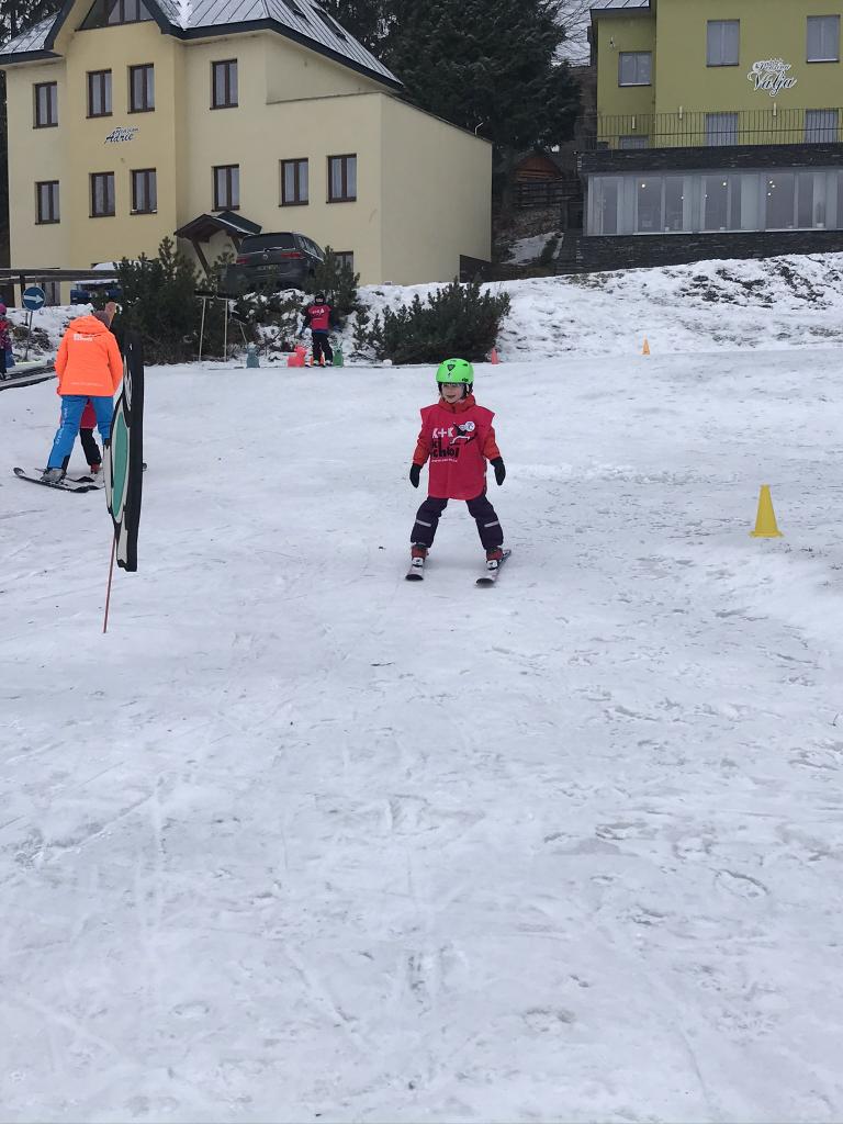 Dnes jsme se všichni těšili na první den na lyžích. Sluníčko nám sice nesvítilo, ale i tak jsme měli dobrou náladu a lyžování jsme si užili. Hned první den někteří už lyžovali na velkém vleku, všichni jsou moc šikovní.