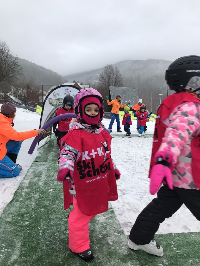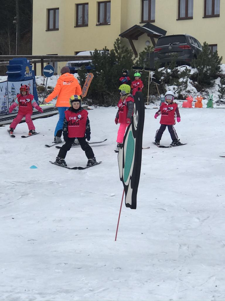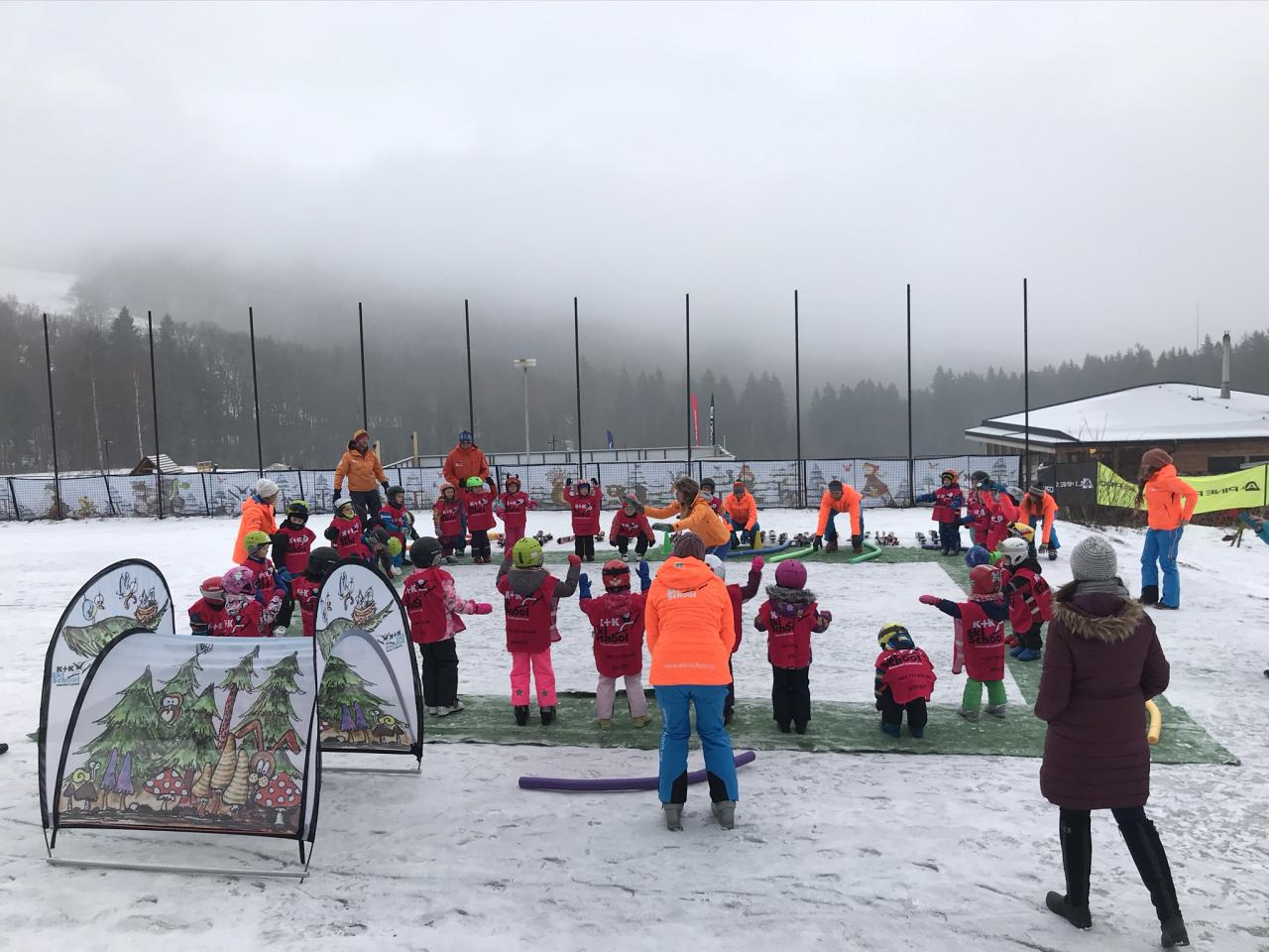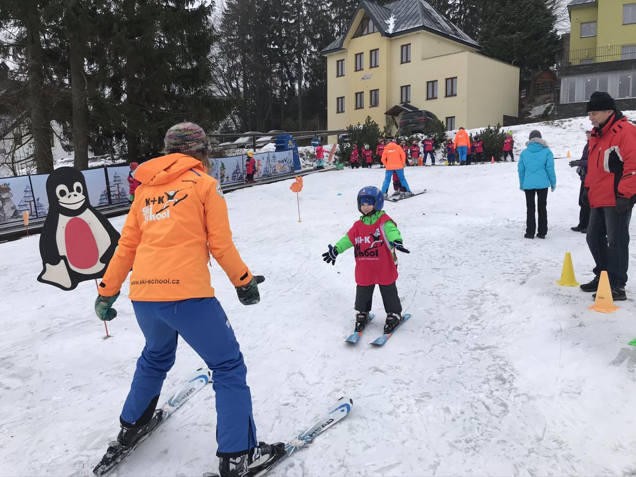 Dnes jsme se všichni těšili na první den na lyžích. Sluníčko nám sice nesvítilo, ale i tak jsme měli dobrou náladu a lyžování jsme si užili. Hned první den někteří už lyžovali na velkém vleku, všichni jsou moc šikovní.