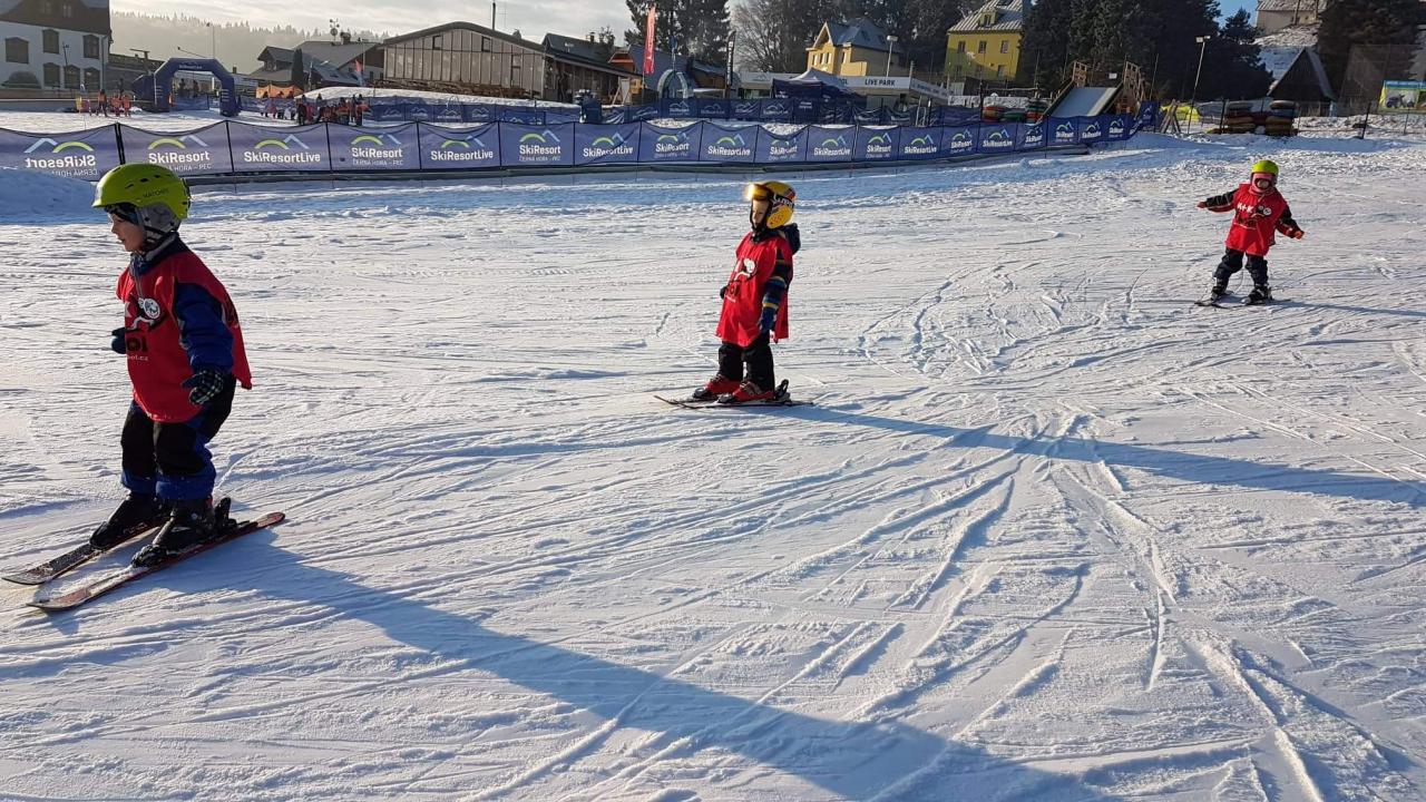 Tak dnes proběhl předposlední den našeho lyžařského kurzu. Sluníčko se na nás zase usmívalo a děti pilně trénovaly na zítřejší závody. Dnes už všichni lyžovali na velké sjezdovce, jsou to rození lyžaři.