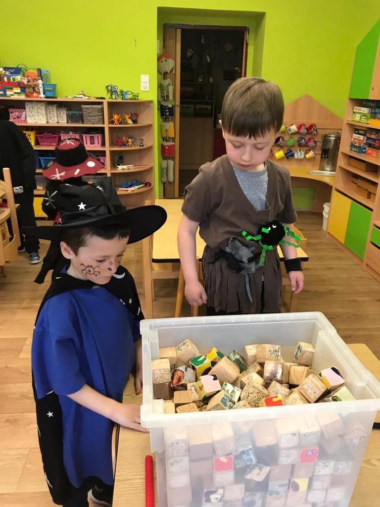 Konec dubna patřil tradici oslavy čarodějnických rejů a sletů. S dětmi jsme si řekli něco málo o historii oslavy tohoto "svátku" a už jsme se mohli vrhnout na vaření čarodějných lektvarů, vymýšlení zaklínadel a plnění úkolů jako překážkový let na koštěti, hledání kouzelných tvorů v žížalovém odvaru, nebo třeba hodu na zlou babici Hexínu.