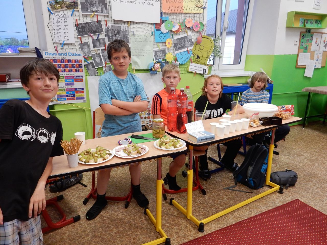 Ve čtvrtek 10. května podniklo 19 žáků cestu vlakem do ZŠ Dolní Branná, kde nás přivítali žáci z 5. ročníku základní školy se svými učitelkami. Připravili si pro nás ochutnávku studené kuchyně a poznávací hru, kdy jsme hledali kartičky se zvířaty, rozmístěné po celé budově školy. Našim úkolem bylo pojmenovat jednotlivé živočichy nejlépe i anglickými názvy.