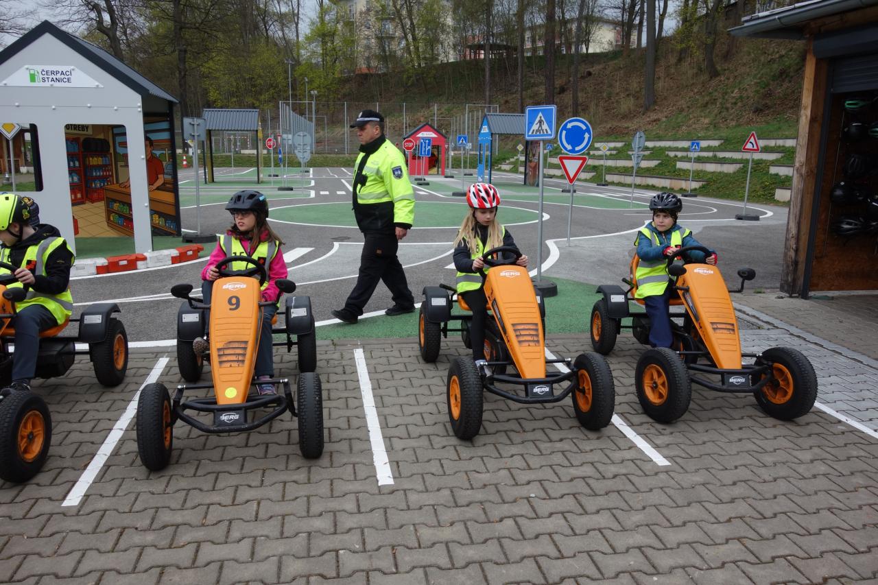 Ve středu 15. dubna jsme jeli autobusem do Trutnova. Ve Středisku volného času v Trutnově jsme měli odbornou výuku týkající se dopravní výchovy a předpisovou jízdu na dopravním hřišti. Vyzkoušeli jsme si jízdu podle dopravních značek, jak na jízdním kole, tak i na motokárách. Kurz byl zakončen testem z dopravní výchovy. Někteří žáci dosáhli výborných výsledků a získali průkaz cyklisty. Kdo dnes neuspěl, musí si test zopakovat ve škole. Děkujeme lektorům ze SVČ za profesionální přístup a odborné vedení dopravní výchovy.