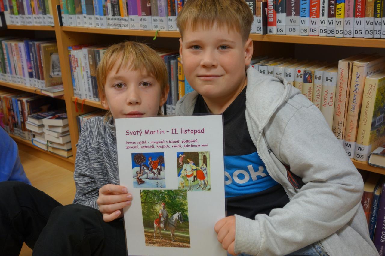 V úterý 11. listopadu jsme oslavili svátek svatého Martina. Žáci ze 4. a 5. ročníku upekli svatomartinské rohlíčky. Mladší spolužáci navštívili obecní knihovnu, kde pro ně pani knihovnice připravila Svatomartinskou stezku. Na jednotlivých stanovištích plnili žáci připravené úkoly, které se vztahovaly k tradicím a pranostikám o svatém Martinovi.Na bílém koni svatý Martin letos nepřijel. Děkujeme paní knihovnici za krásně připravený program.